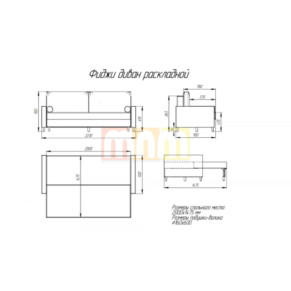 Фиджи диван раскладной предназначен для обстановки зон отдыха жилых помещений. Схема раскладки – механизм перемещения «Тик-Так».