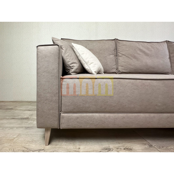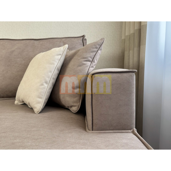 Диван-кровать угловой Этран представлен в искусственной замше теплого бежевого цвета. Коллекция Vertus обладает эффектом натуральной замши. За ней легко ухаживать и чистить. Материал воздухонепроницаемый и обладает антибактериальной пропиткой.
