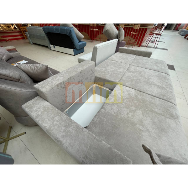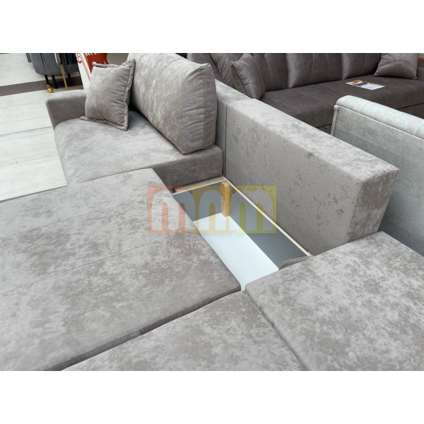 Спинка дивана на основе независимого пружинного блока + пенополиуретан. Сидение на основе независимого пружинного блока + пружинная змейка + пенополиуретан. Основание сидения и спинки – пиломатериалы хвойных пород. Имеется емкость для хранения в каждой секции. Так как каждая из секций раскладывается отдельно, то из прямого дивана можно получить угловой и даже П-образный диван.