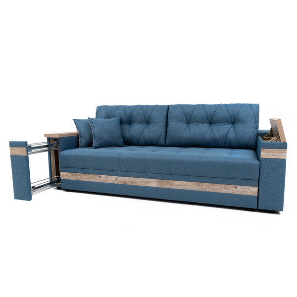 Диван-кровать Руслана-2 — современная, удобная, простая модель. В разложенном виде представляет удобную 2-х спальную кровать. Сидение и спинка на основе независимого пружинного блока. Имеется емкость для постельных принадлежностей. В правой боковине располагается карго, в левой – минибар, который открывается при помощи верхней декоративной накладки. В комплект входят 2 подушки спинки и две маленькие декоративные подушки. Может изготавливаться в разных цветовых решениях. Механизм трансформации — «еврокнига».